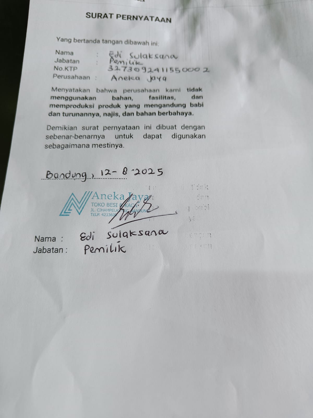 [IMG]11. Surat Pernyataan Halal Aneka Jaya.jpeg2025-08-13 09:28 92K