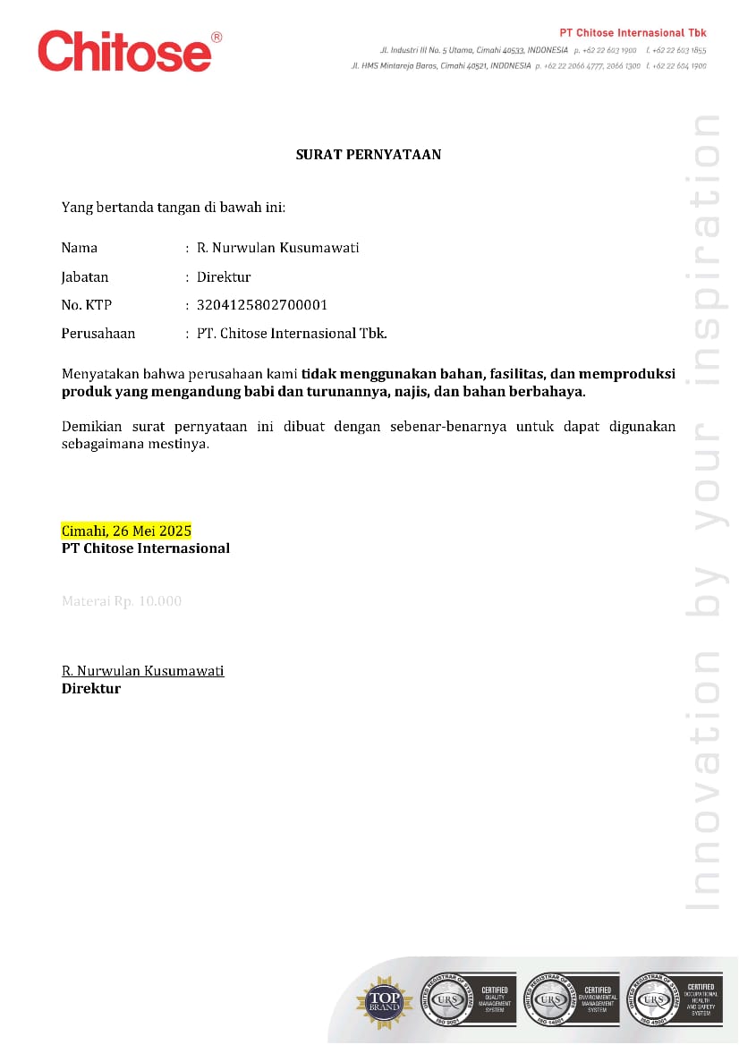 Index of /SISTEM MANAJEMEN/10. HALAL/Dokumen Audit Halal/1. LAMPIRAN-LAMPIRAN/0. DATA LAMA/PENGAJUAN AWAL (26-08-2025)/1. PENGAJUAN FURNITURE/Lampiran 9 - MSDS-COA-Bebas Babi/4. SURAT BEBAS BABI INTERNAL