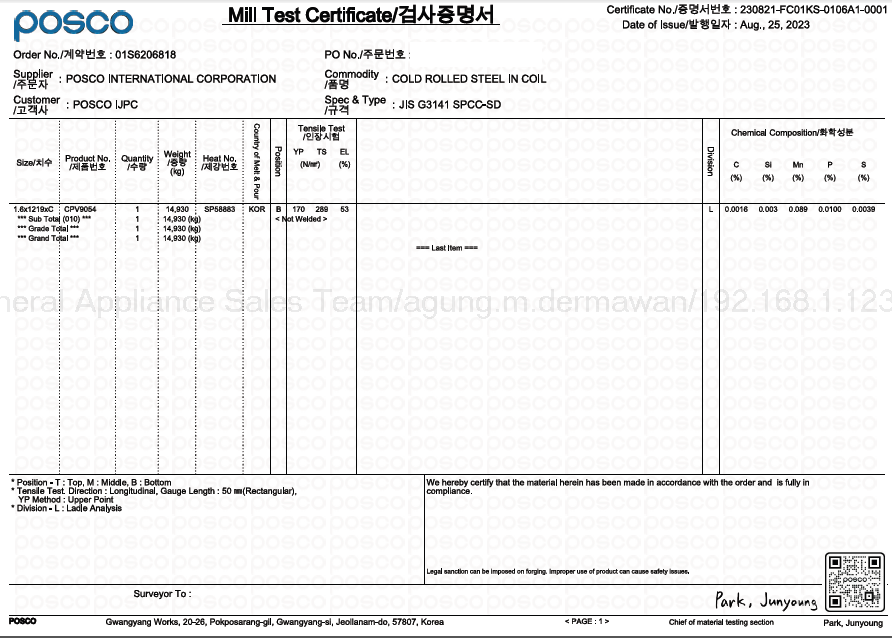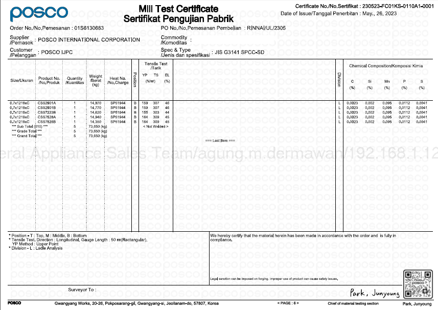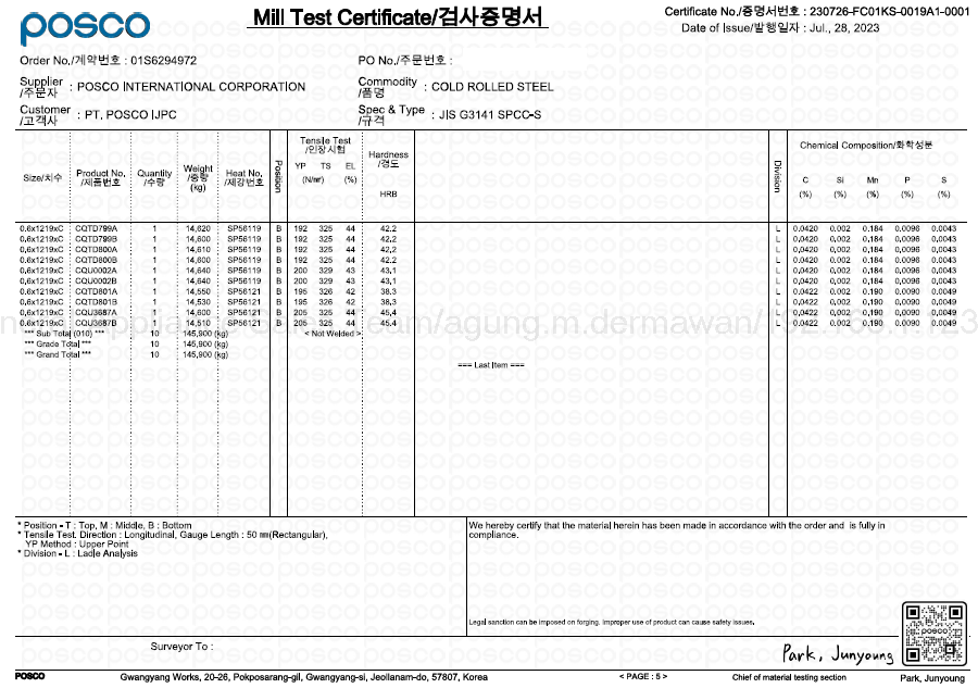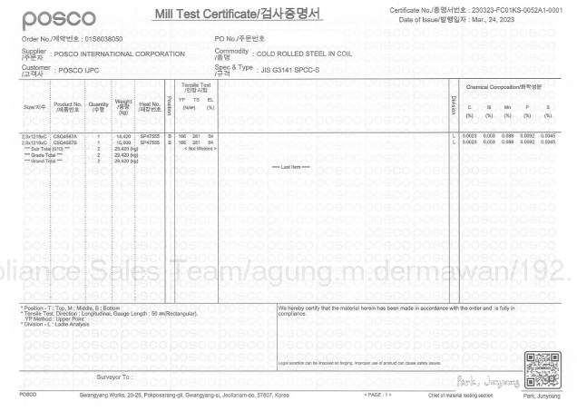 | 4.5. Mill Test Certificate CSS2901B 0.7 mm.pdf | 2024-01-30 11:30 | 66K | ||